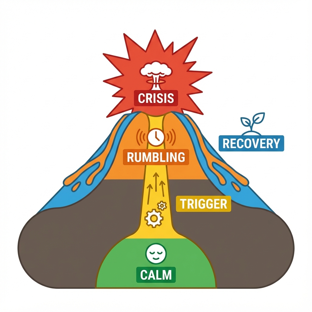 - Stage 3 (Rumbling): Fidgeting, pacing, quiet. Intervention: Reduce demands, offer choices.